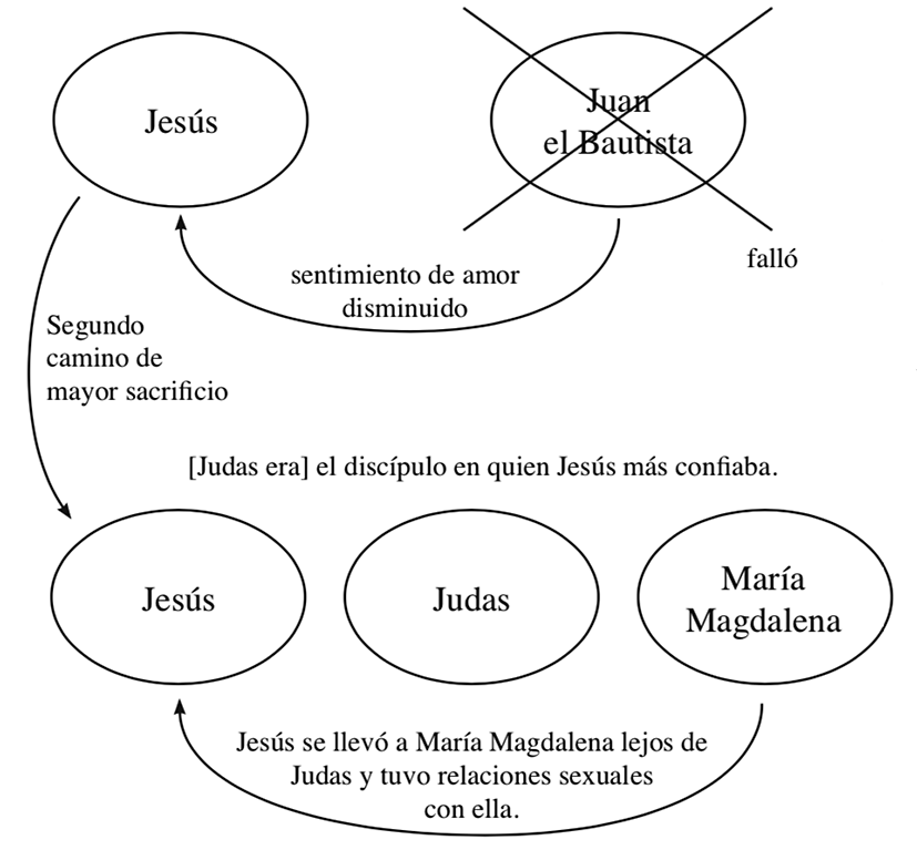 María Magdalena era la amante del discípulo más confiable, Judas. Para cambiar el linaje y dejarlo sin pecado original, Jesús debería haber tomado a María Magdalena y haber tenido relaciones sexuales con ella.