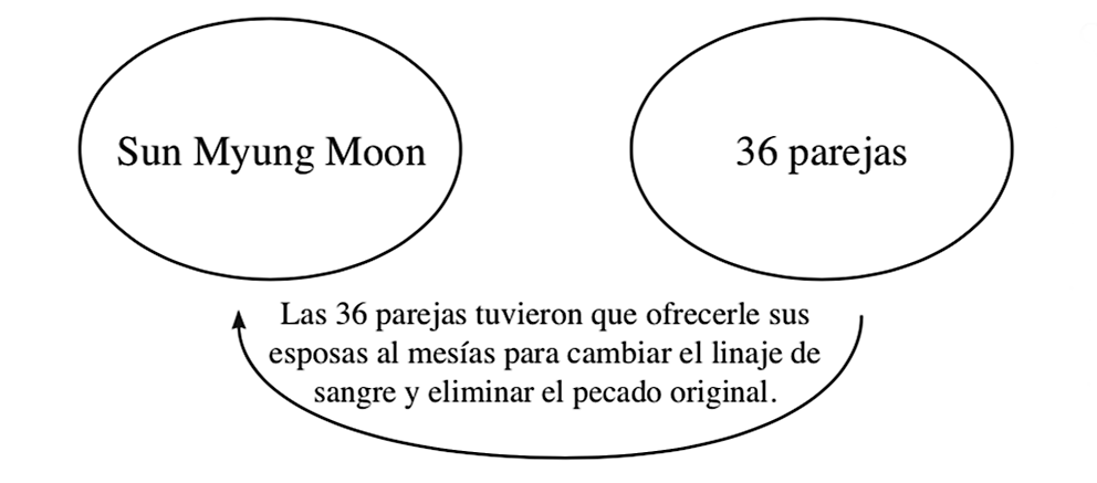 2) Un creyente recibe un cuerpo espiritual al participar en una ceremonia conocida como limpieza de la sangre, que consiste en que las mujeres tengan relaciones sexuales con Moon y que los hombres tengan relaciones sexuales con esa mujer. Esta idea de limpieza de sangre proviene de la enseñanza de que Eva cometió inmoralidad con la Serpiente y ella nos transmite a todos nosotros sangre de serpiente.